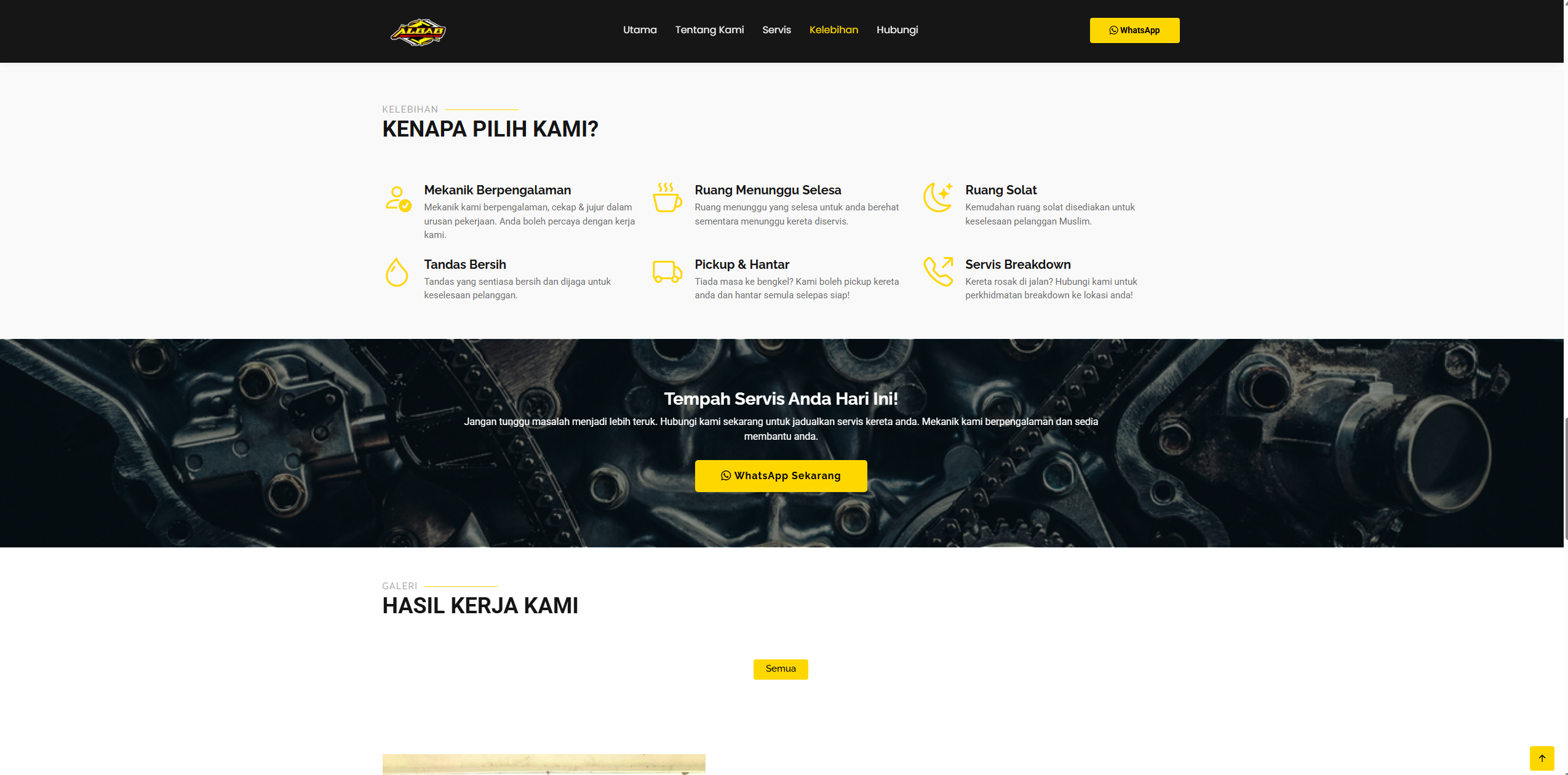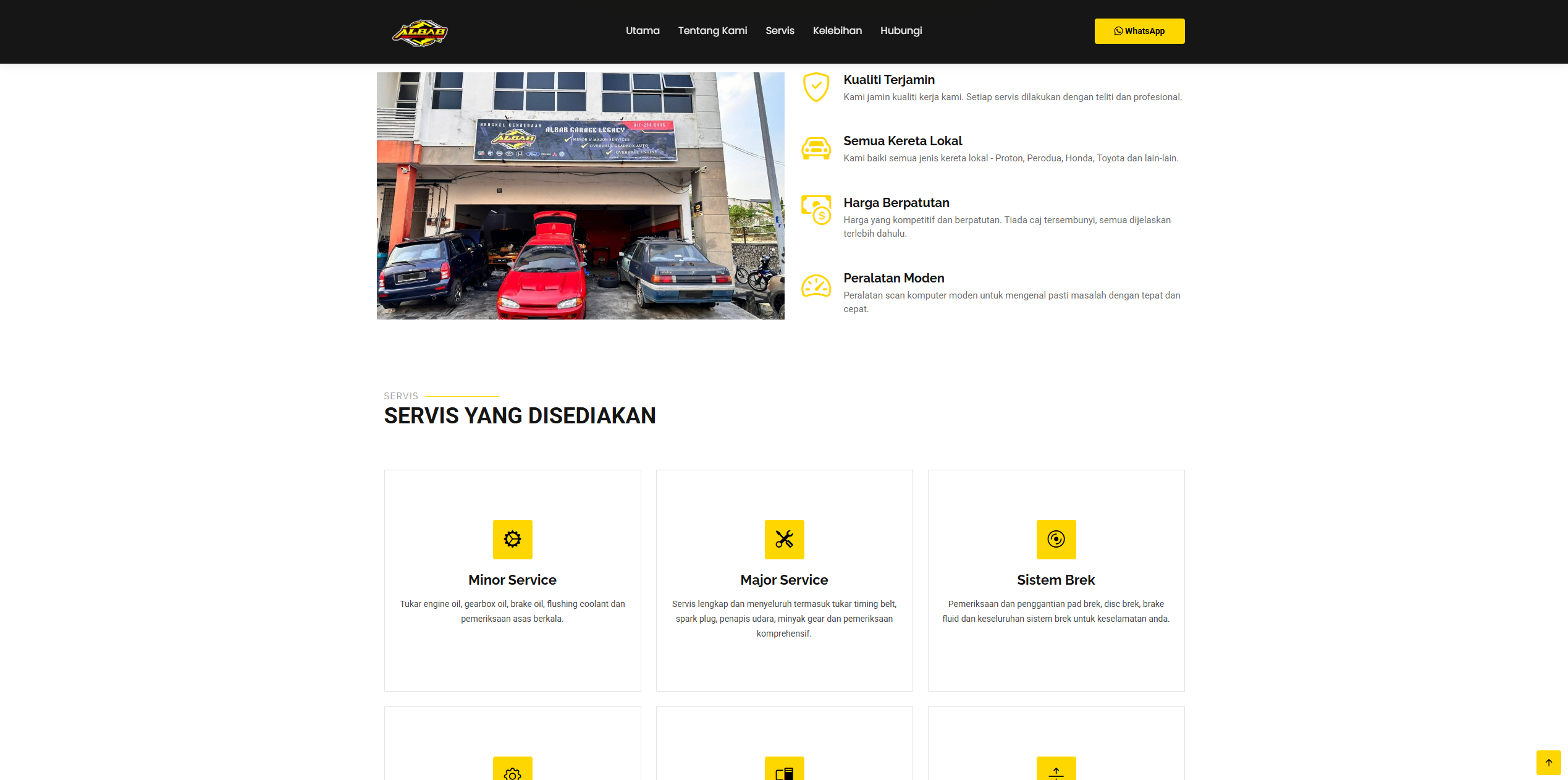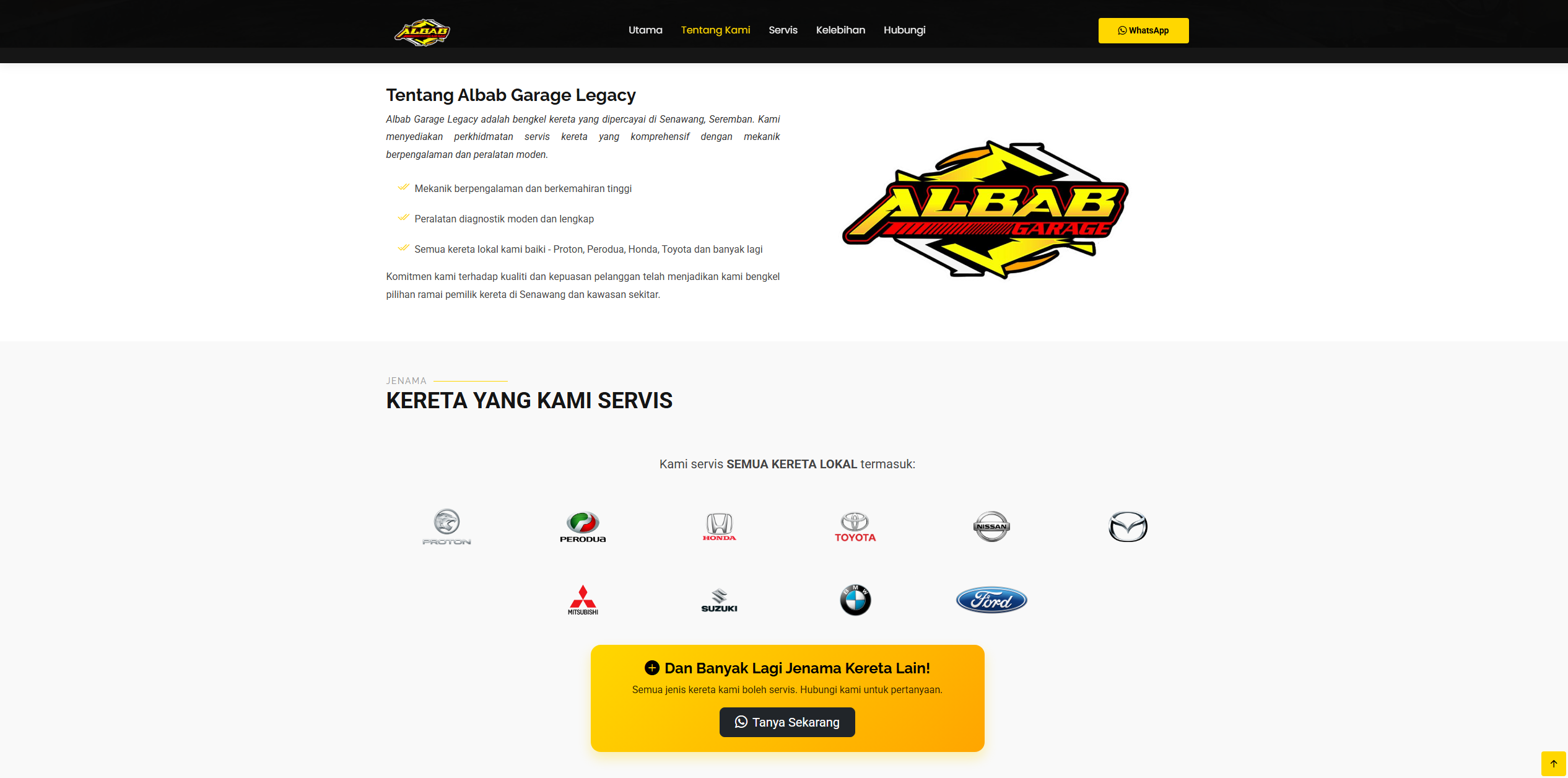 The website of Albab Garage Legacy introduces a professional automotive workshop that provides vehicle repair and maintenance services. Located in Senawang, Seremban, the garage is known for its experienced mechanics, modern equipment, and commitment to delivering high-quality service to customers. The workshop offers a wide range of services including routine car servicing, engine and gearbox repairs, diagnostics, brake maintenance, air-conditioning service, tyre and wheel alignment, and electrical system repairs. With a strong focus on customer satisfaction and reliable workmanship, Albab Garage Legacy aims to ensure that every vehicle is maintained in optimal condition.